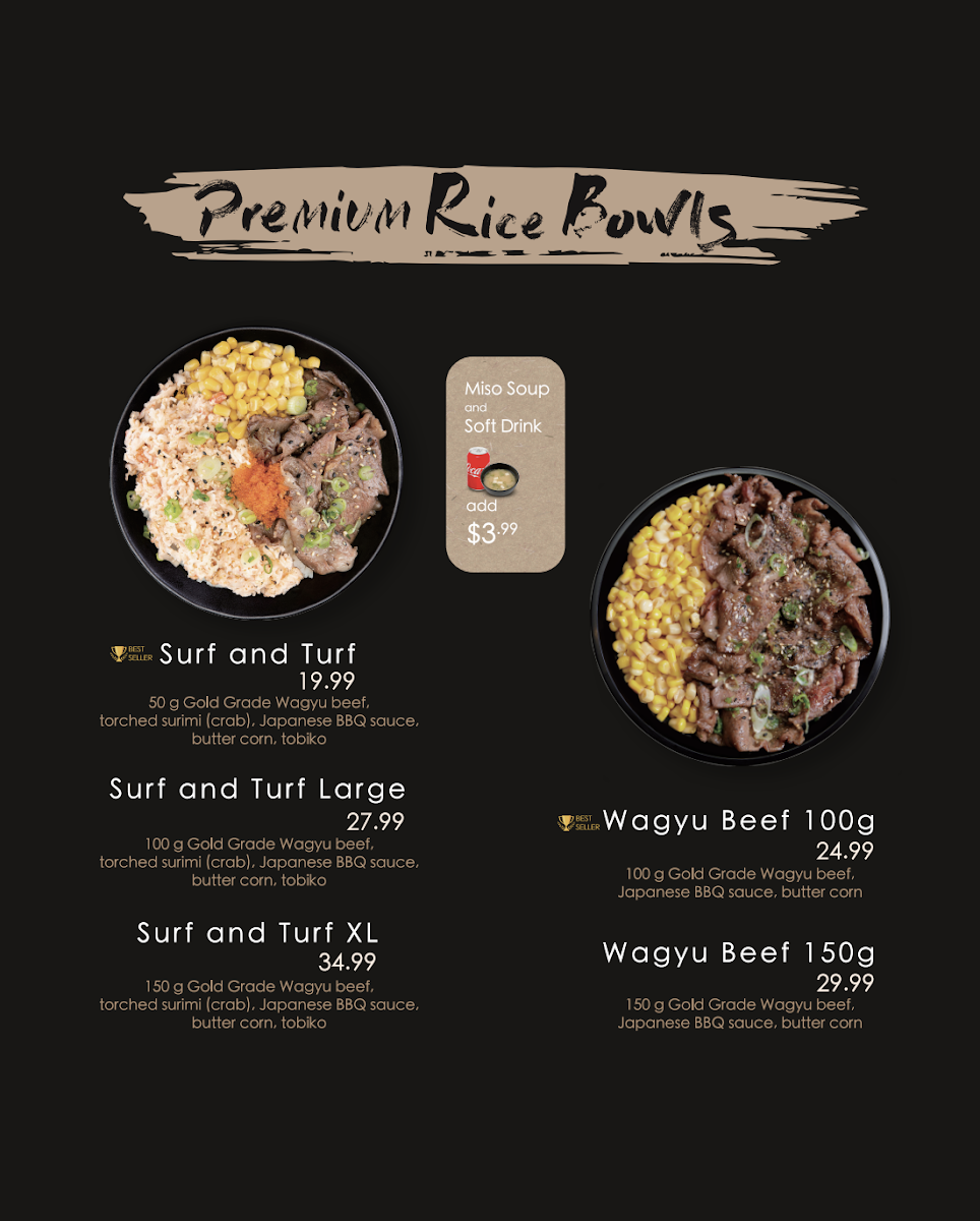 The menu is a delightful journey through flavor, featuring irresistible rice bowls like the Spicy Salmon Bowl and savory Unagi Bowl. Each dish showcases premium ingredients bursting with authenticity and taste.